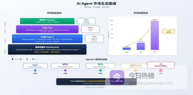Gartner预测,2026年底40%的企业应用将集成AI Agent,2028年Agentic AI将进入33%的企业软件。这个增速背后是整个企业自动化市场的重新洗牌,不只是AI领域的增量。