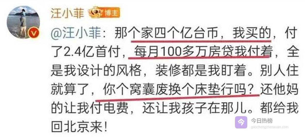 尤其是两个人结婚,汪小菲还吐槽自己为具俊晔了一年的房贷,一直到2023年,汪小菲公开拒绝还贷,每月20多万的房贷,这才落到了大s身上,甚至汪小菲还称结婚后的很长时间里,房子里的水费、电费,连具俊晔穿的鞋子,都是大s刷自己的信用卡才买的
