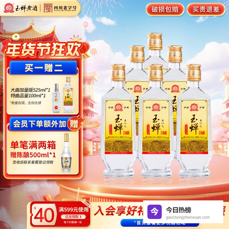 玉蝉老酒玉蝉大曲 52度浓香型白酒500ml高粱小麦经典纯固态法发酵酿造 52度 500mL 6瓶 大曲光瓶整箱¥