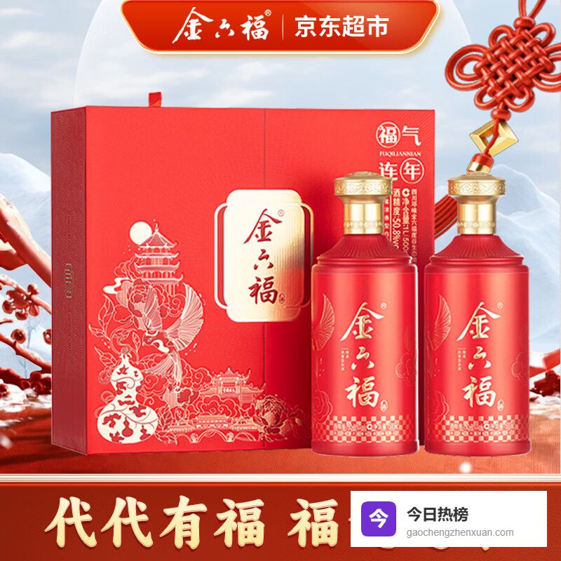 金六福福气连年 绵柔浓香型白酒 50.8度 500ml*2瓶 礼盒装【喜宴送礼】¥