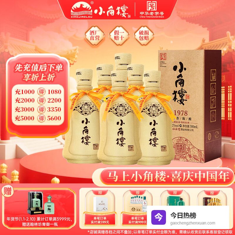 小角楼1978 52度浓香型白酒口粮酒 四川白酒礼盒装固态纯粮粮食口粮酒 52%vol 500mL 6瓶 升级版带3礼品袋¥