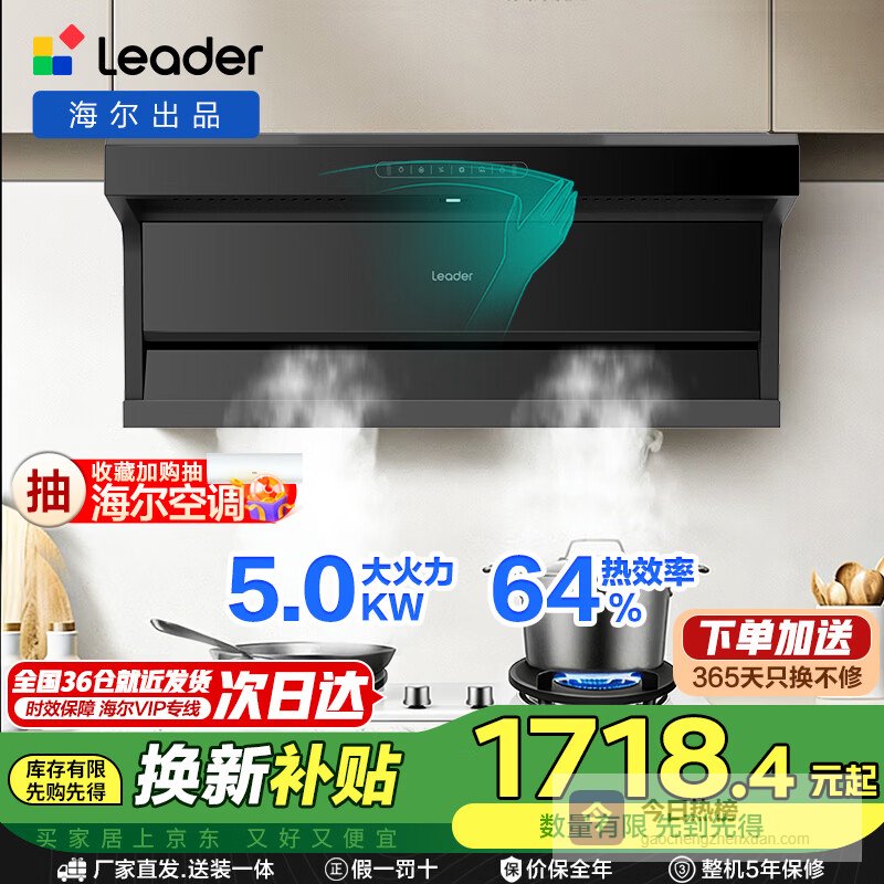 海尔智家出品统帅变频抽油烟机家用大吸力7字型纤薄顶侧底三吸排烟机Q61燃气灶具套装家电以旧换新 【液化气灶】26大吸力+5.0KW猛火灶¥