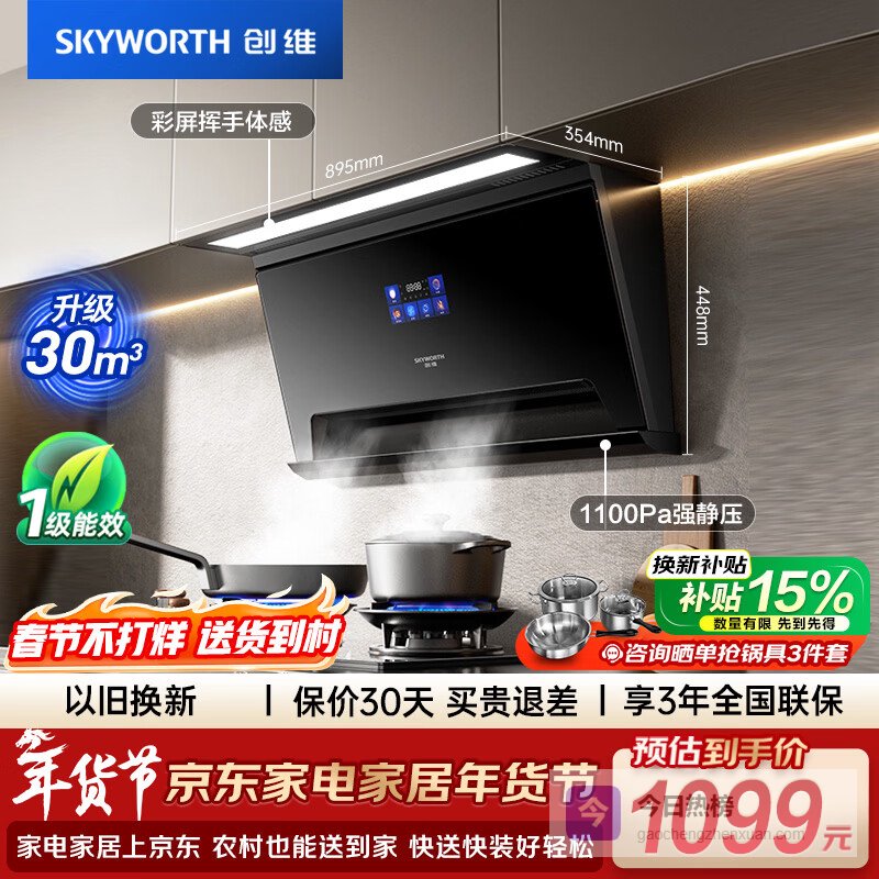 创维(Skyworth)顶侧双吸抽油烟机家用7字型30m³新款变频大吸力排烟机一级能效脱排自动清洗Y738¥