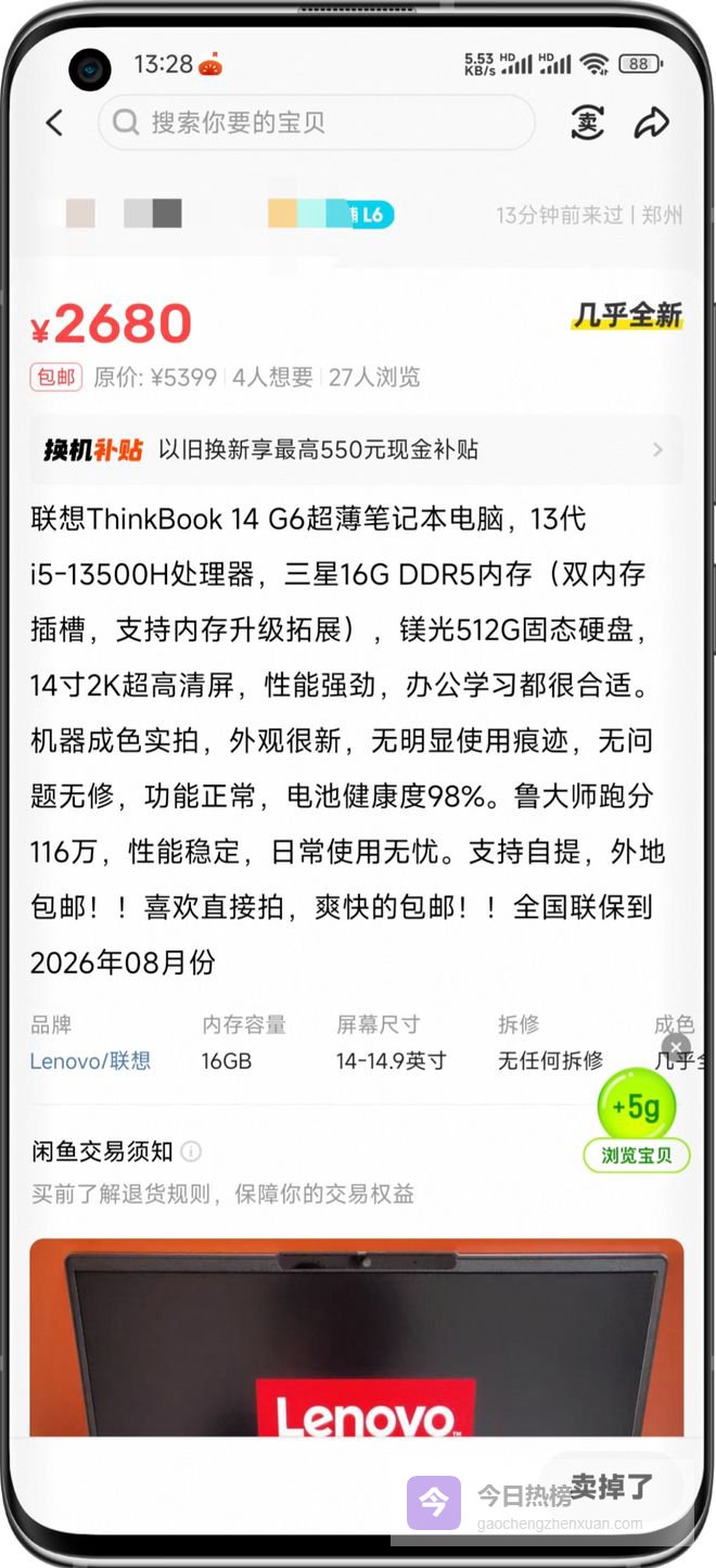 就要说一下二手了,预算只有三千左右预算,又想要不错笔记本电脑的同学,可以去看看2023款的thinkbook 14.