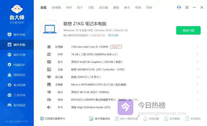 可以看到一些细节配置还是不错的健康度还在98.15%,这种也是一直插电用的,大家使用习惯差不多,无线网用了WIFI6E,现在新款的降到WIFI6了,直接降级了一些。