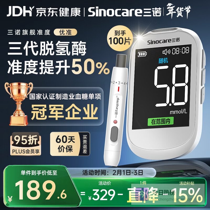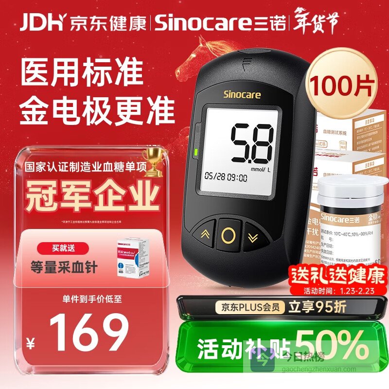 三诺优准血糖仪脱氢酶医用高精准家用检测语音播报年货 仪器 100试纸¥