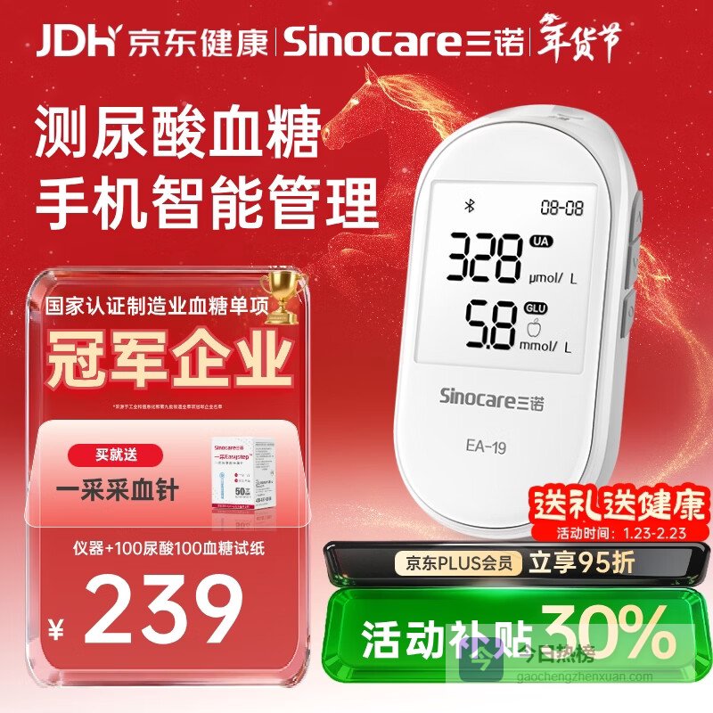 1️⃣ 精准双测,一步到位:这款三诺EA-19尿酸血糖一体机,简直就是健康小帮手!一次采血,就能同时测出尿酸和血糖,省去了来回跑医院的麻烦。采血量只需要1.5μL,比传统方法更少,而且测完尿酸再测血糖,中间都不用等,速度超快!