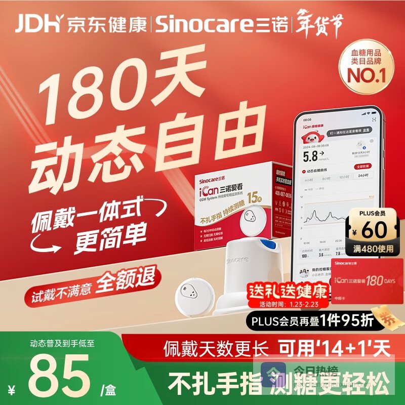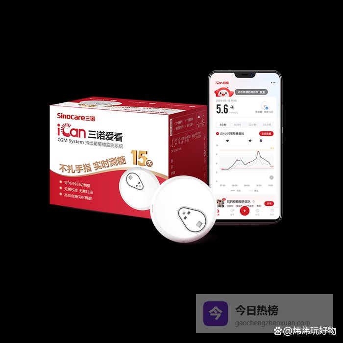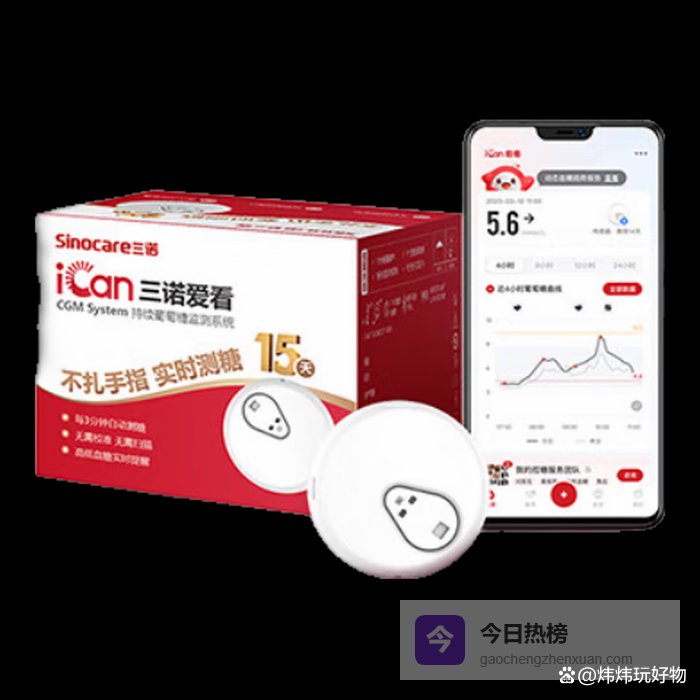 1️⃣ 持续监测,精准控糖:三诺爱看动态血糖仪,15天不间断监测,每3分钟自动测糖,无需校准,蓝牙连接手机就能实时查看血糖数据。MARD值8.71%,比国家标准还精准,让你对血糖波动了如指掌,控糖更轻松。