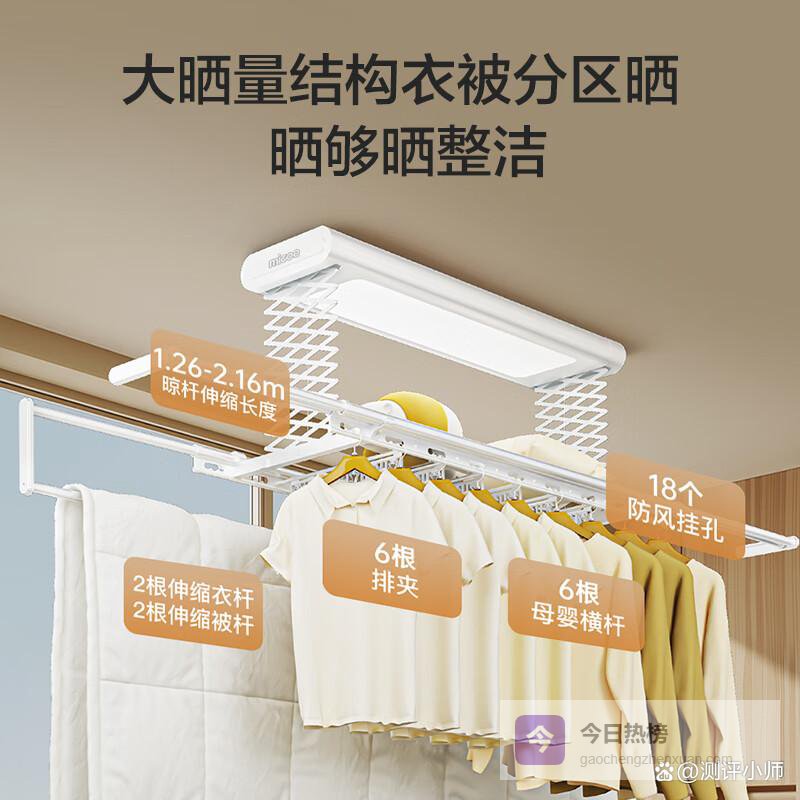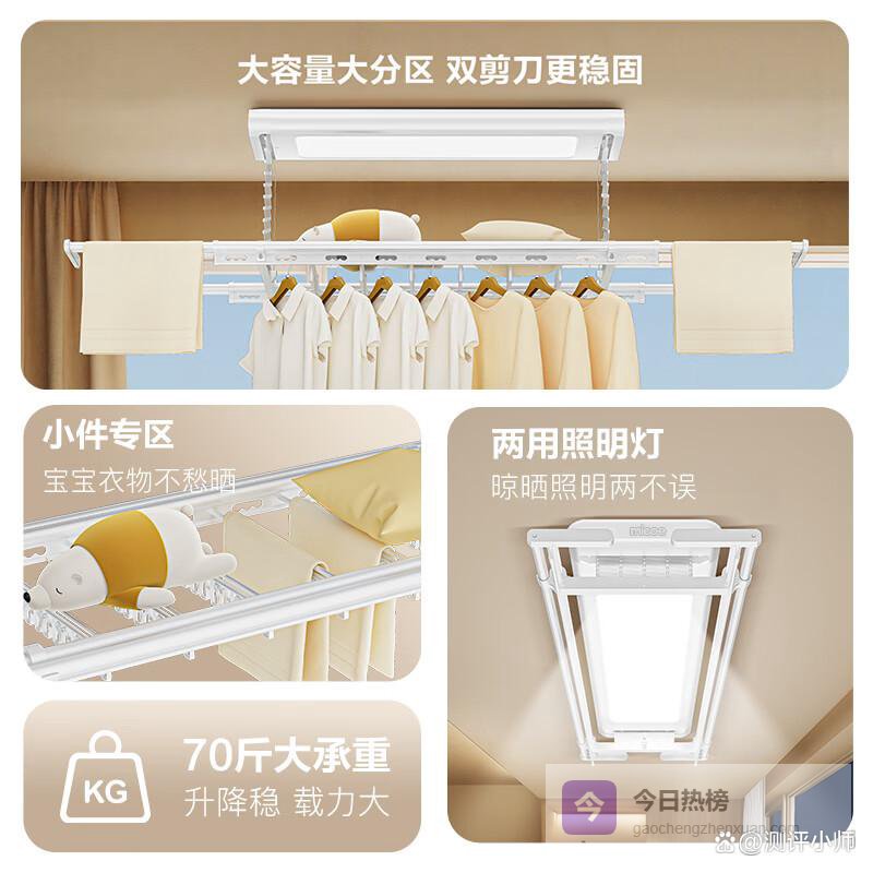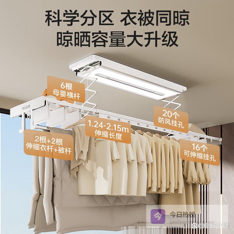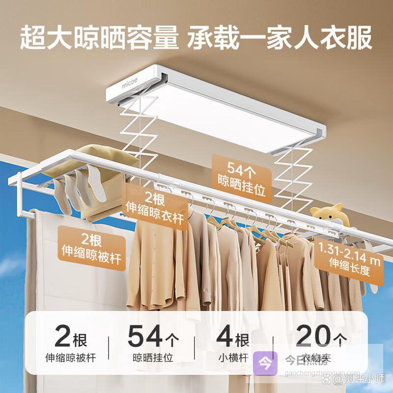 避坑技巧,选择电动晾衣架更智慧。注意产品的最大下降高度。电动晾衣架的最大下降高度直接影响到使用的便利性和适用场景。如果你家居住空间较高,可以选择最大下降高度超过1200mm的型号,以保证晾晒衣物时的灵活性。而对于低层住宅,则无需过于追求高度,适合选择较低高度的款式,避免不必要的浪费。