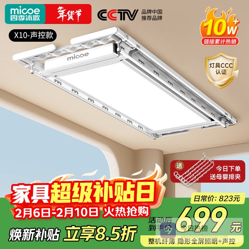第六款:四季沐歌智能电动晾衣架X10 机器臂升降+LED灯