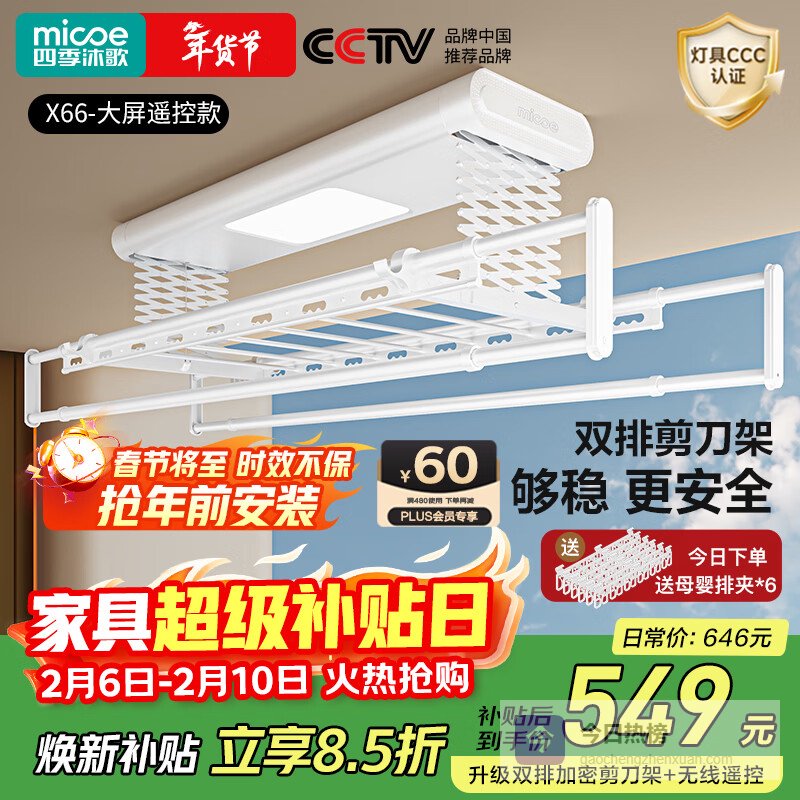 第三款:四季沐歌电动晾衣架X66巨屏照明