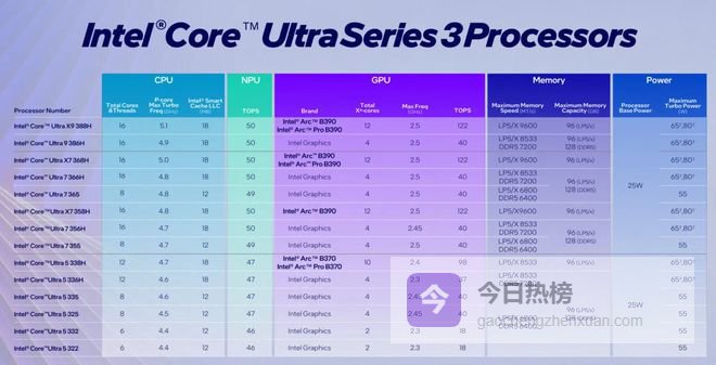 英特尔则是第三代酷睿Ultra,主要区别在于显卡方面,Arc B370、Arc B390都有不错的表现。