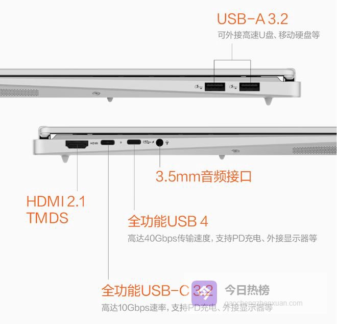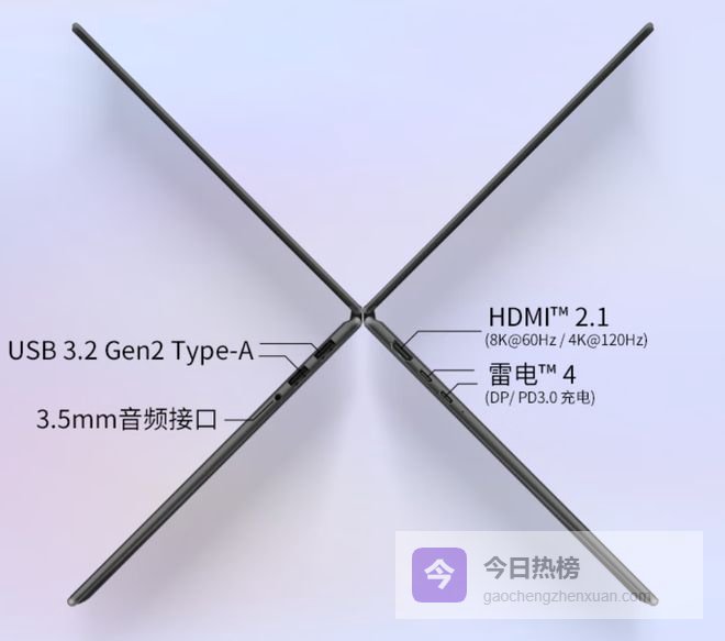 采用了2A2C设计,两个雷电4接口,还有满血HDMI 2.1接口,音频接口。81Wh电池,重量1.32Kg。
