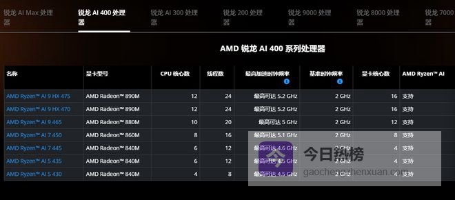 AMD方面,是AI 400系列,有两款是HX型号,作为高端,但其他也有10核心的型号,也很强大。