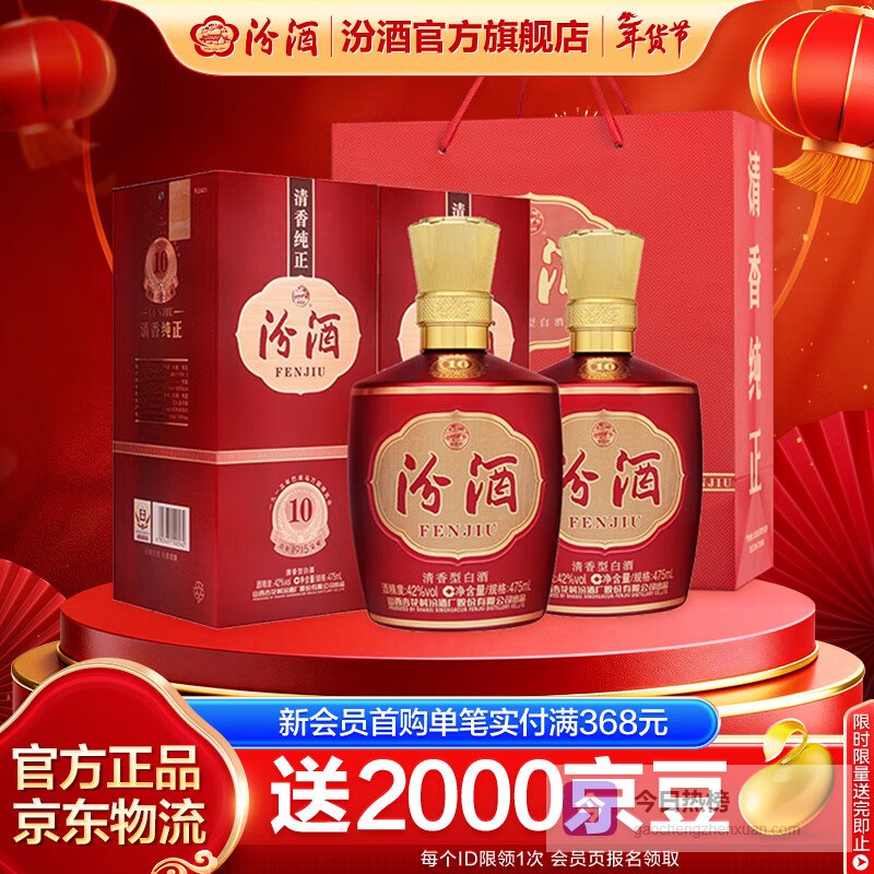 汾酒 1915巴拿马10【送礼佳品】清香型白酒 过年送礼宴请 喜宴用酒 42度 475mL 2瓶 礼袋装¥