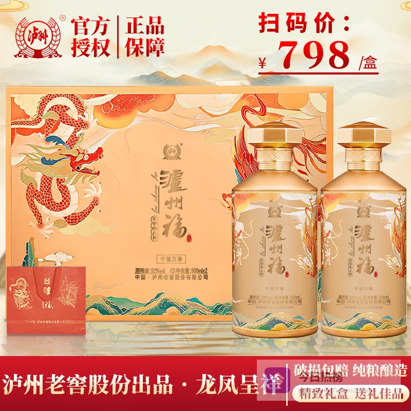 泸州老窖出品 52度优级 浓香型白酒 泸州福龙凤呈祥 婚宴喜宴送礼 52%vol 500mL 2瓶¥