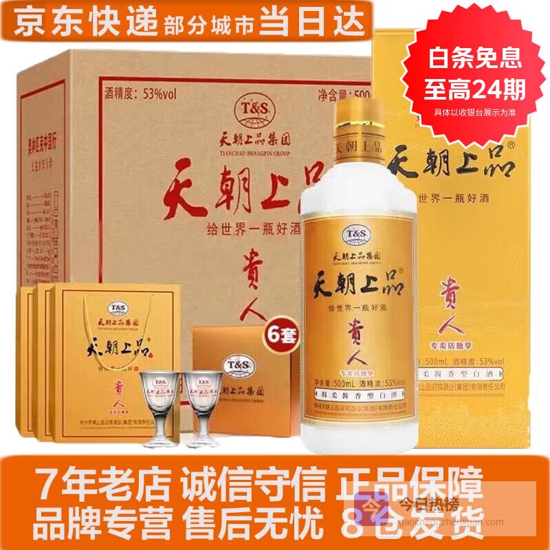 天朝上品 贵人酒 绵柔酱香型白酒53度婚宴喜宴商务用酒 整箱装 53%vol 500mL 6瓶 贵人专卖店款¥