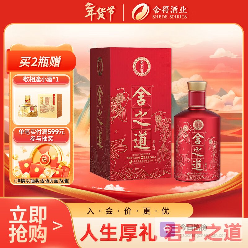 舍得 舍之道喜庆 浓香型白酒 50度500ml 单瓶 喜宴喜酒年货送礼礼物¥