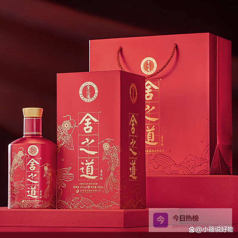 三、舍得这款舍得舍之道喜庆白酒采用浓香型酒体,具有丰富的香气层次和醇厚的口感。50度的酒精度倒是挺符合庆典氛围,喝起来倒是挺顺口,搭配各种佳肴还行。不过,要注意的是,浓郁的香气对敏感的人来说可能会稍微刺激一些。