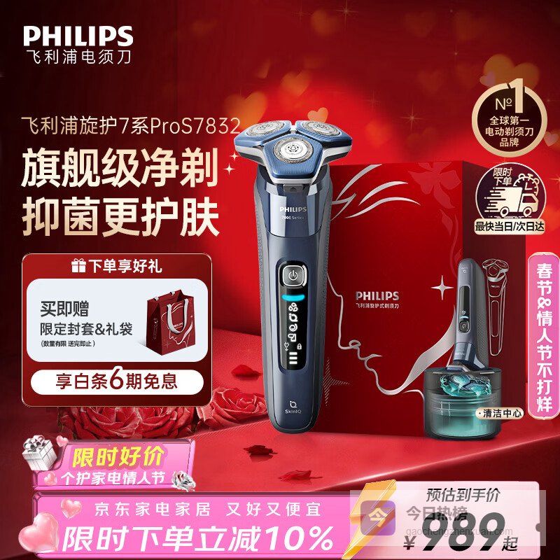 飞利浦(PHILIPS)电动剃须刀旋护7系Pro SkinIQ智能刮胡刀 情人节生日礼物送男生男友老公父亲¥