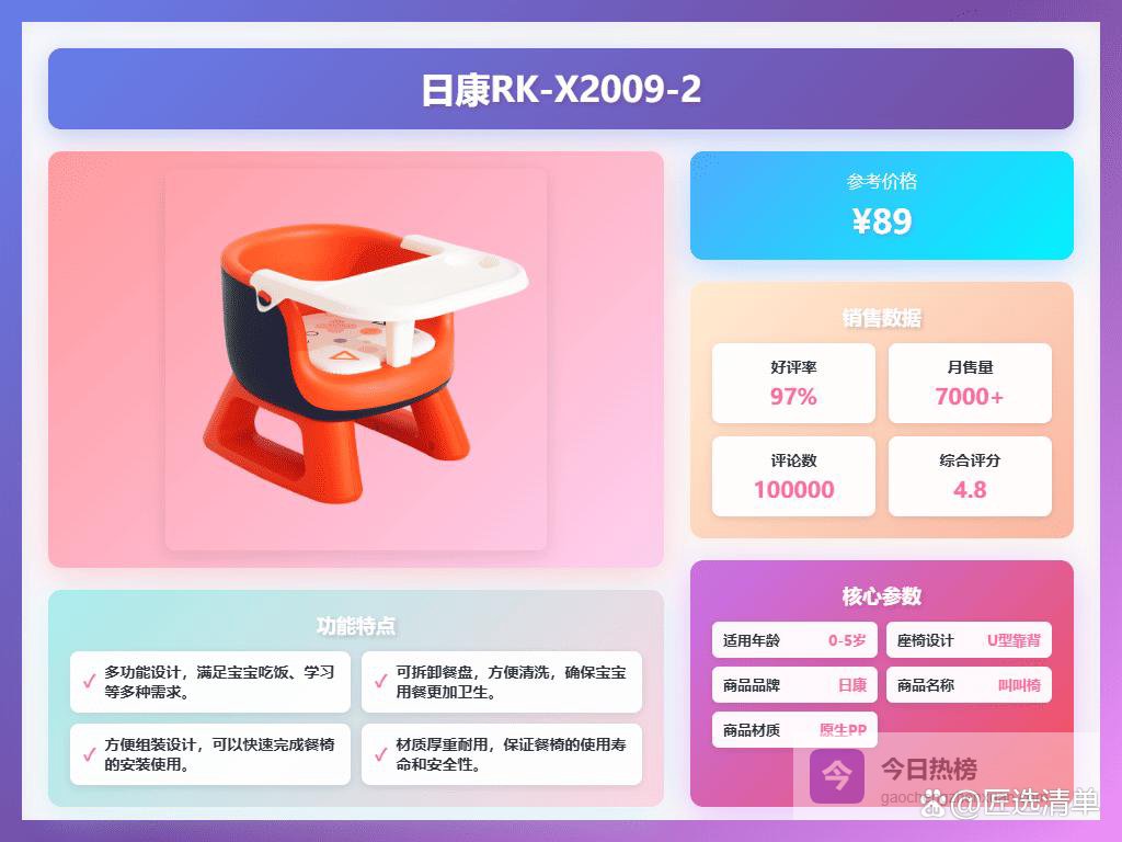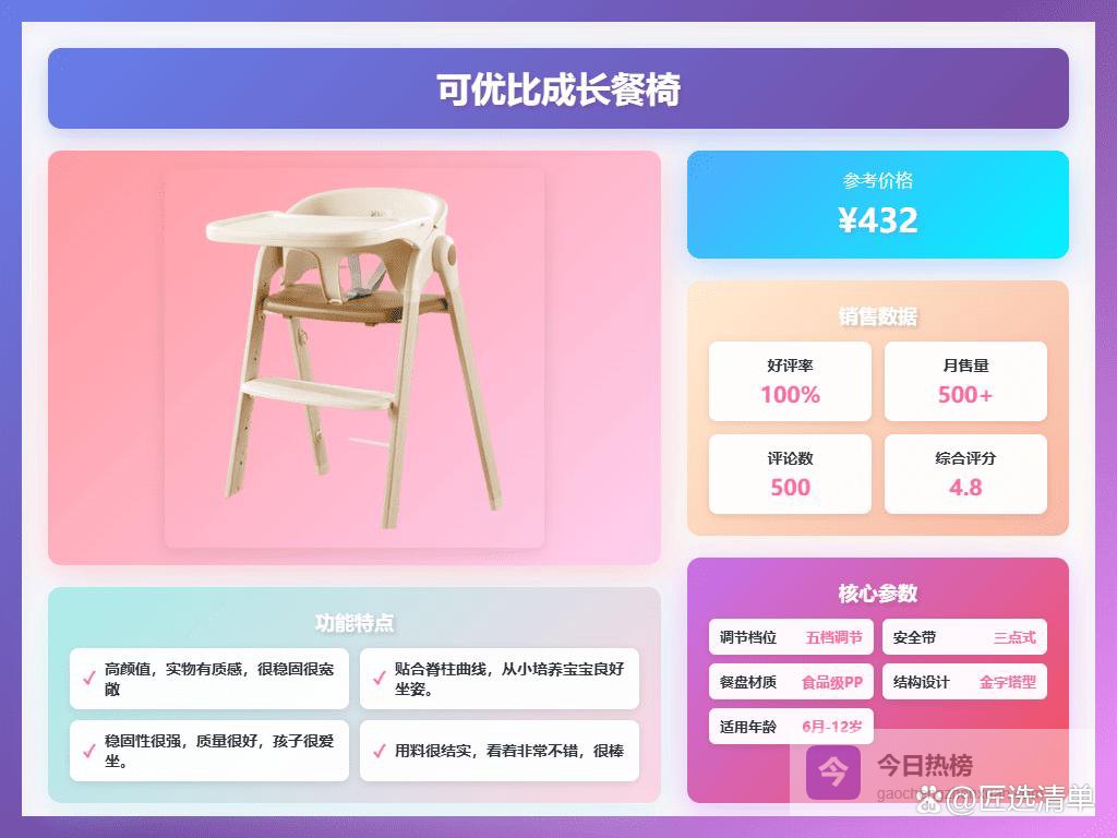 写在最后:总而言之,选择儿童餐椅要综合考虑安全性、舒适性和实用性。多看看测评,多对比不同品牌和型号,选择一款最适合自家宝宝的餐椅,让宝宝享受安全又舒适的用餐体验吧!