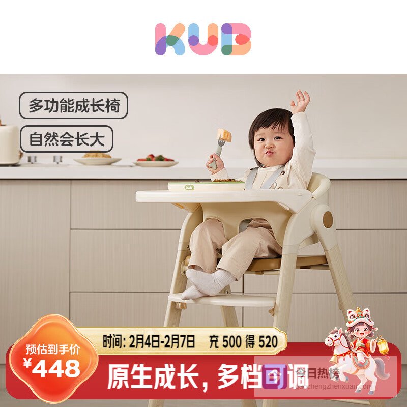 可优比(KUB)成长餐椅儿多功能吃饭餐椅宝宝餐椅儿童餐椅婴可折叠-米白色¥