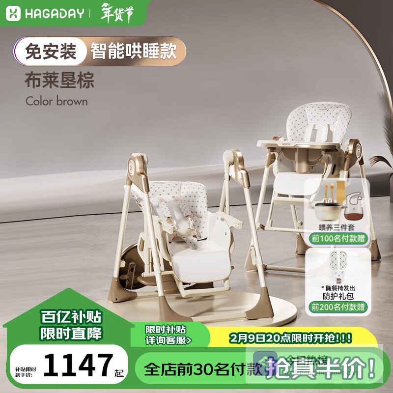 哈卡达宝宝餐椅婴儿学坐家用哄睡神器儿童餐桌椅摇椅二合一 【智能哄睡】布莱垦棕Pro-免安装¥