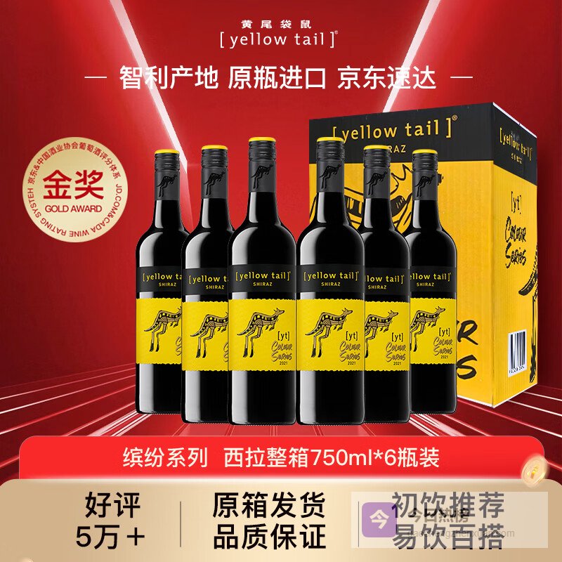 推荐入手:黄尾袋鼠缤纷系列西拉红酒整箱750ml*6瓶
