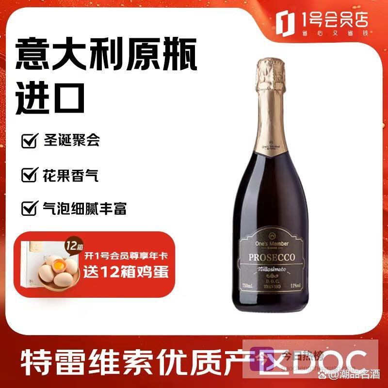 1号会员店意大利普罗塞克气泡葡萄酒750ml露营火锅烧烤佳节年货好礼¥