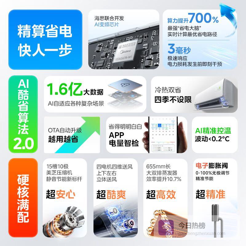 1️⃣极高能效等级:新晋一级能效设计,成为省电的代表,助力节省家庭电费,使舒适居家变得更加经济实惠。无论是酷暑还是寒冬,都能够有效控制能源消耗,让你在享受舒适的同时不再心疼账单。