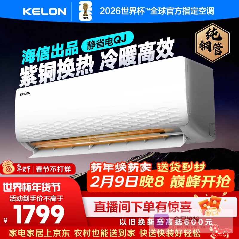 【京东自营】科龙空调大1.5匹海信出品静省电Ultra喵式生活世界杯定制空调新一级变频挂机KFR-3¥