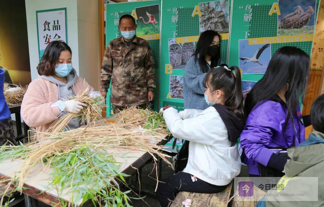 2.1 ◆ 亲子DIY:把爱编进柳藤里在科普老师的带领下,亲子家庭用柳藤、草编、木藤自由拼接,把平面宣传海报上的鸟巢立体化。一个个形态各异的“小窝”挂在枝头,孩子们发现:原来鸟儿也需要遮风挡雨的角落。