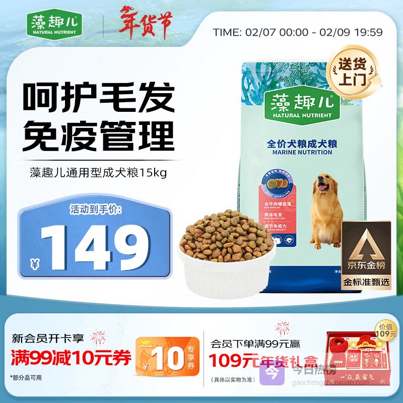 【京东自营】麦富迪狗粮藻趣儿狗粮成犬粮牛肉螺旋藻均衡营养15kg/30斤¥