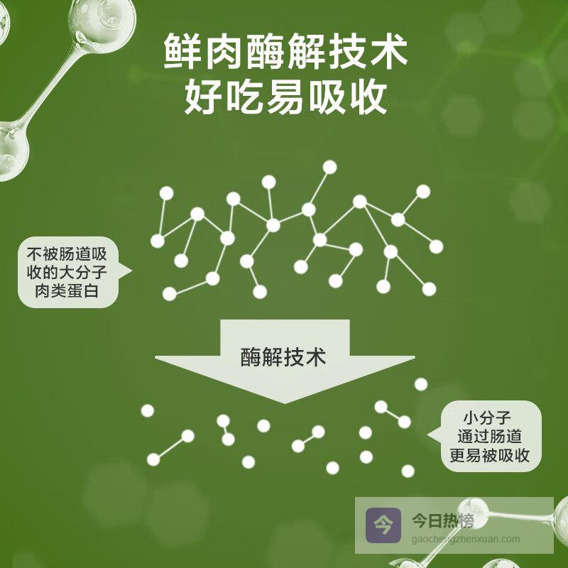 2️⃣高效消化吸收:采用独特酶解工艺,提高了蛋白质的吸收率,促进肠道健康。同时帮助狗狗轻松消化,让爱犬尽情享受每一餐,无负担地获取营养。