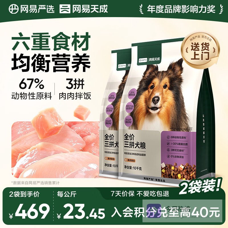 【京东自营】网易严选犬粮全价冻干三拼鸡肉狗粮幼犬成犬小型中大型犬通用金毛10kg*2¥