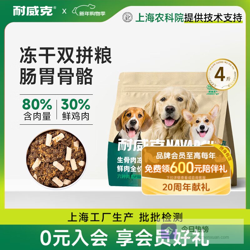 推荐入手:耐威克生骨肉冻干狗粮4斤