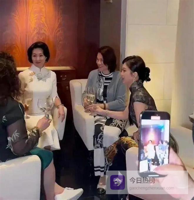她全程都在笑。 不是那种大开大合的笑,是嘴角弯到一个恰好的弧度,眼睛也跟着微微弯起来。 有人过来敬酒,她端起香槟杯,小指自然而然地微微翘起,和对方轻轻一碰,抿一口,再点点头。 整个动作像慢镜头,又稳又雅。 她站在那儿,不用说话,就是一幅画。 很多人想起一个词:大家闺秀。 还是最顶配的那种。