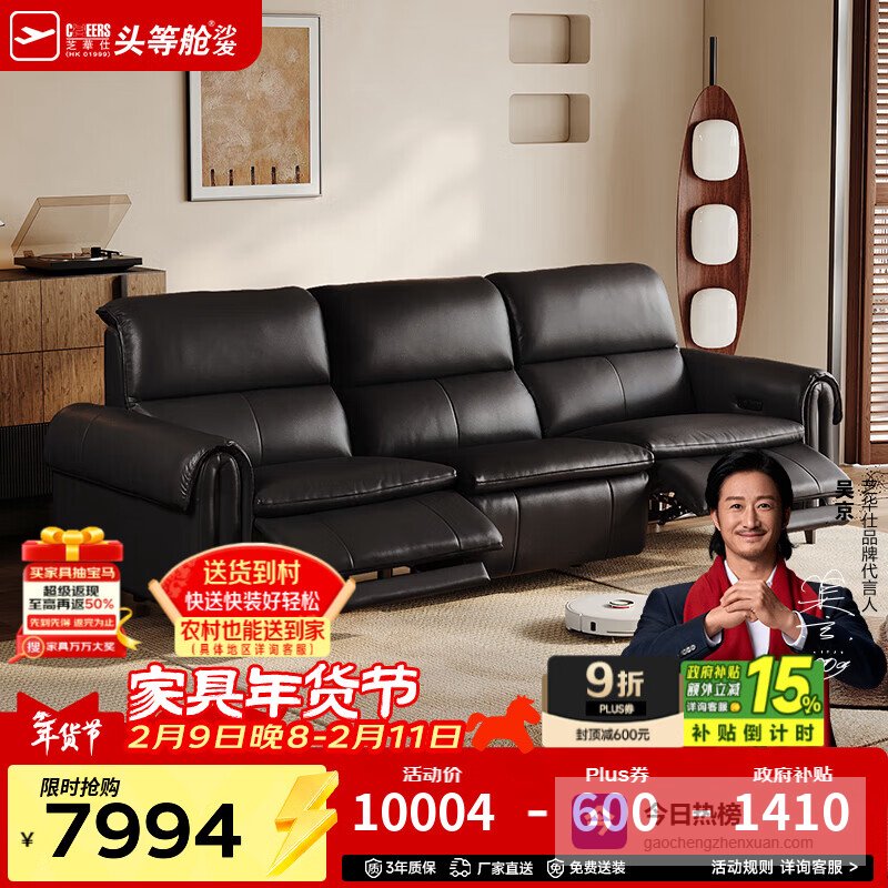 【京东自营】芝华仕头等舱真皮电动沙发客厅2025新款半青皮零重力拿铁30789黑2.67m¥