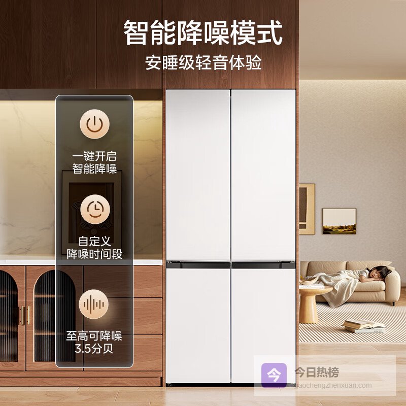 2️⃣ 超静音节能设计双变频压缩机运行时噪音仅38分贝,比普通冰箱安静20%。一级能效日均耗电约0.89度,节能表现突出。夜间模式下运行声音进一步降低,开放式厨房也不扰眠。