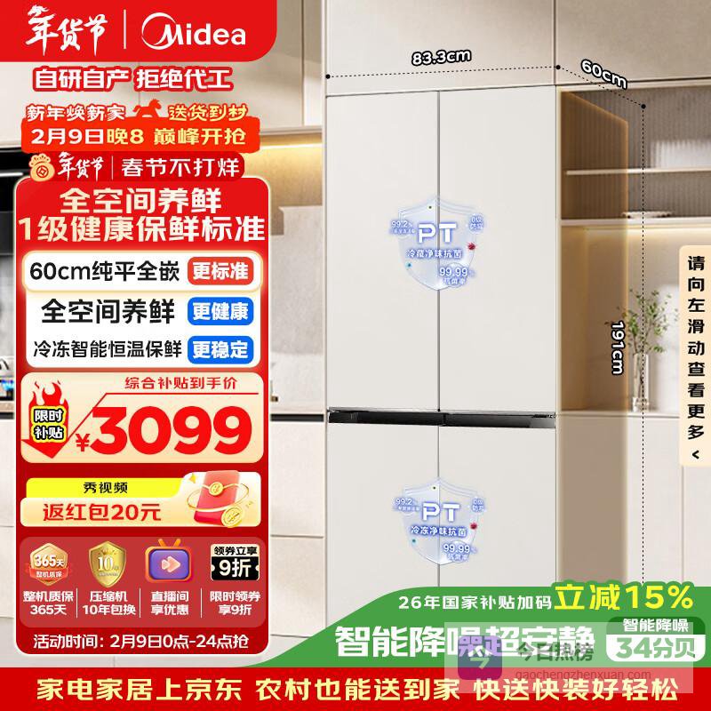 四款美的嵌入式冰箱各具特色,从503L的十字门全能选手到424L的精致五门设计,共同点是超薄机身与高效空间的完美平衡。国家补贴政策和以旧换新服务进一步降低了升级门槛。无论您需要大容量存储还是精细化分储,追求智能互联还是极致静音,这个系列都能提供专业解决方案。选择适合家庭结构和烹饪习惯的型号,让高科技冰箱成为提升生活品质的得力助手。