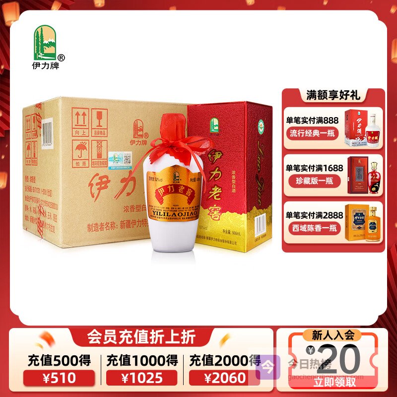 【京东自营】伊力特伊力老窖浓香型白酒52度500ml*6瓶整箱装¥