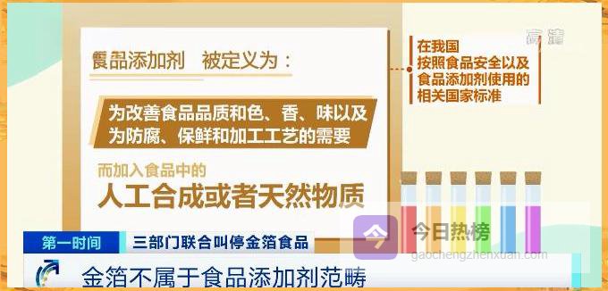 我国《食品安全国家标准 食品添加剂使用标准》明确:食品添加剂是为改善品质、色泽、口感而加入的人工合成或天然物质。 金箔既不防腐、也不保鲜、更不提供营养,连“改善感观”都算不上,因此从法律层面就被排除在食品添加剂之外。换句话说,任何把金箔写进配料表的包装,都是违规操作。