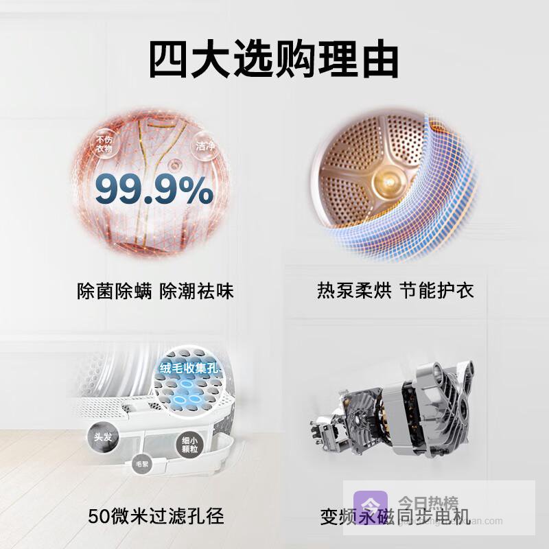 2️⃣节能热泵技术:相比传统烘干方式,采用热泵技术更加节能环保,让衣物在保持高效干燥的同时,也为家庭节省了电费开销。绿色生活从此开始。