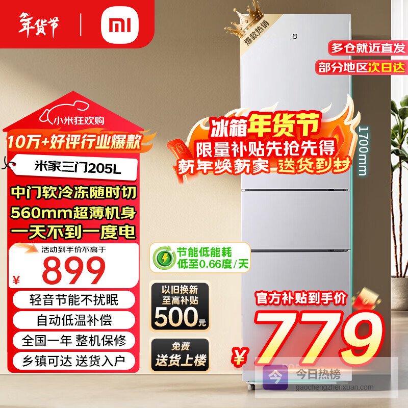 第3款:小米三门冰箱205升这个小米米家冰箱,三门三温区设计确实挺人性化,冷藏、软冷冻、冷冻分开放,东西不串味儿。像我这种懒人,最怕的就是打开冰箱一股混合味,这个设计算是解决了我的一个痛点。