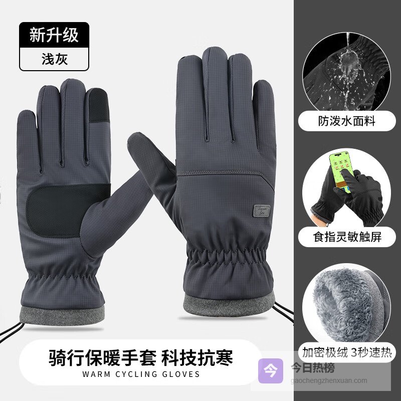 LNGA LANDGRE秋冬男士保暖手套肤感防风防寒防滑可触屏骑行电动车男女冬季手套 肤感-灰色 均码¥