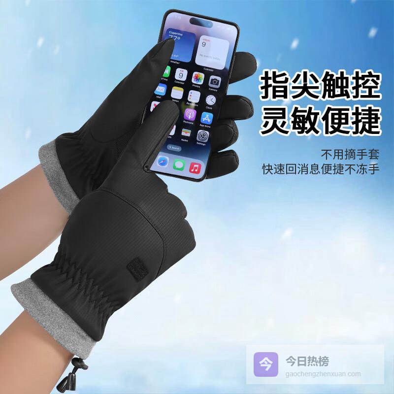 二、零下5℃也能精准触屏的「第二层皮肤」![手套佩戴效果图,展示触屏操作手机场景]