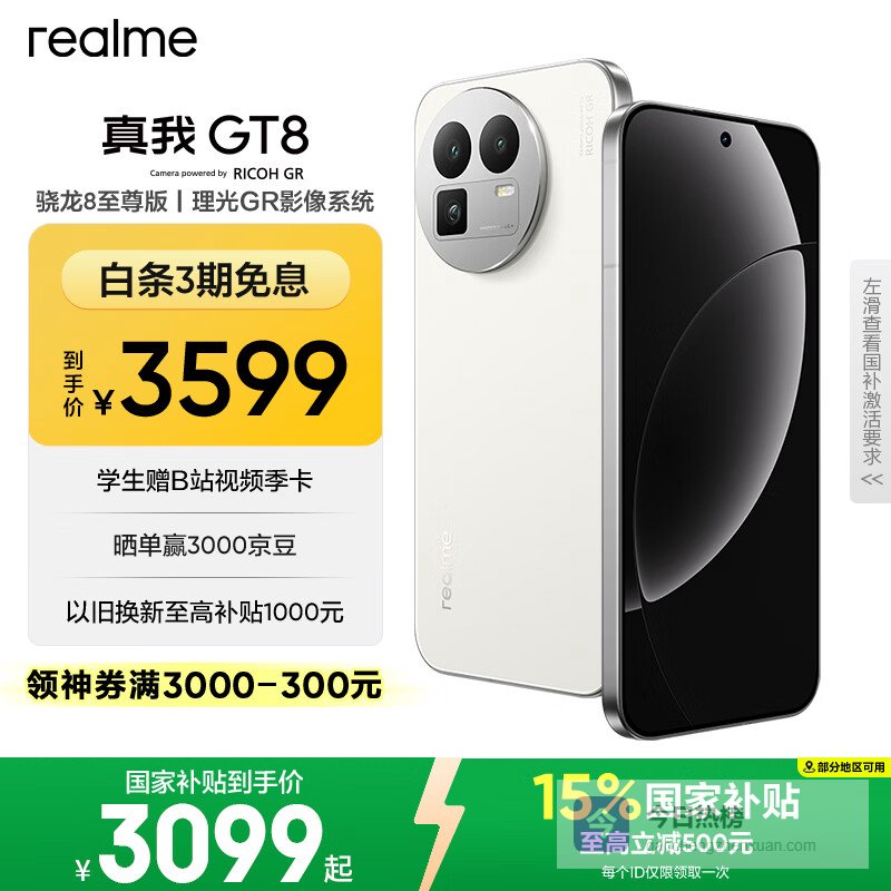 realme真我GT8 OPPO 骁龙8至尊版 2K 144Hz高刷直屏 5000万潜望长焦 电竞游戏学生手机京东自营16+512白¥