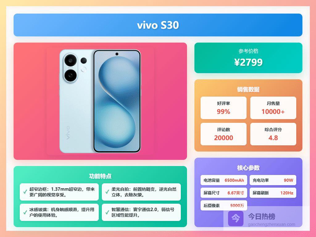 2026年,热销品牌榜型号推荐一、vivo① AI长焦拍摄:支持潜望式长焦拍摄,让你轻松拍出远景细节,最高可以变焦到100倍,无论是远处的建筑还是风景,都能捕捉得很清楚,倒是告诉你拍远景就是这么方便。