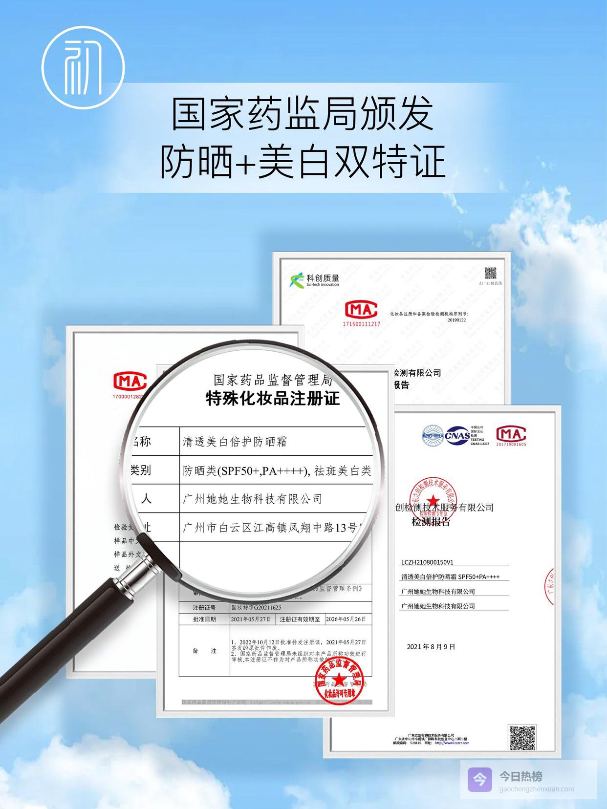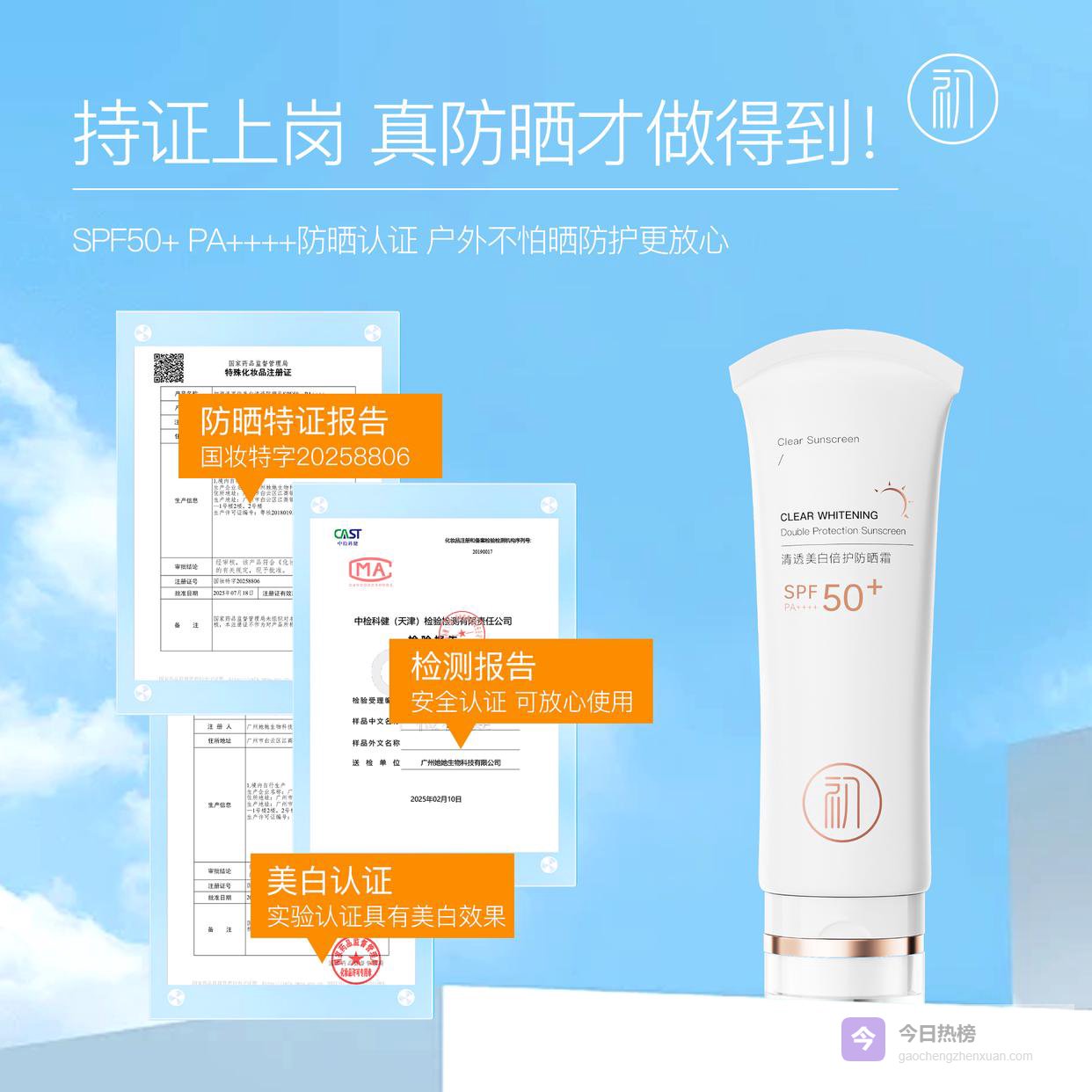 官方权威背书:持有国妆特字美白+防晒双认证(国妆特字G20211625),符合GB/T 39502-2020防晒标准,斩获2026美妆成分科技大奖“年度最佳养肤防晒金奖”、中国化妆品协会2025年度最佳口碑防晒桂冠,权威性拉满。