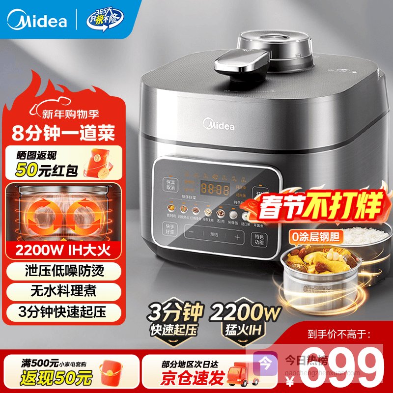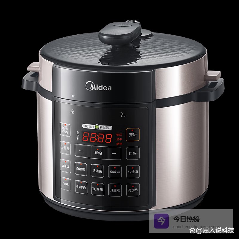 第3款:美的MY-S5175C这电压力锅IH加热确实猛,2200W大功率,热得快,食材受热均匀,能更好锁住水分。试了下,用它做红烧排骨,8分钟就搞定,肉香味都逼出来了,而且营养保留得还挺好。早上着急出门,用它24小时预约功能,晚上就能吃到热乎的饭菜,省心。